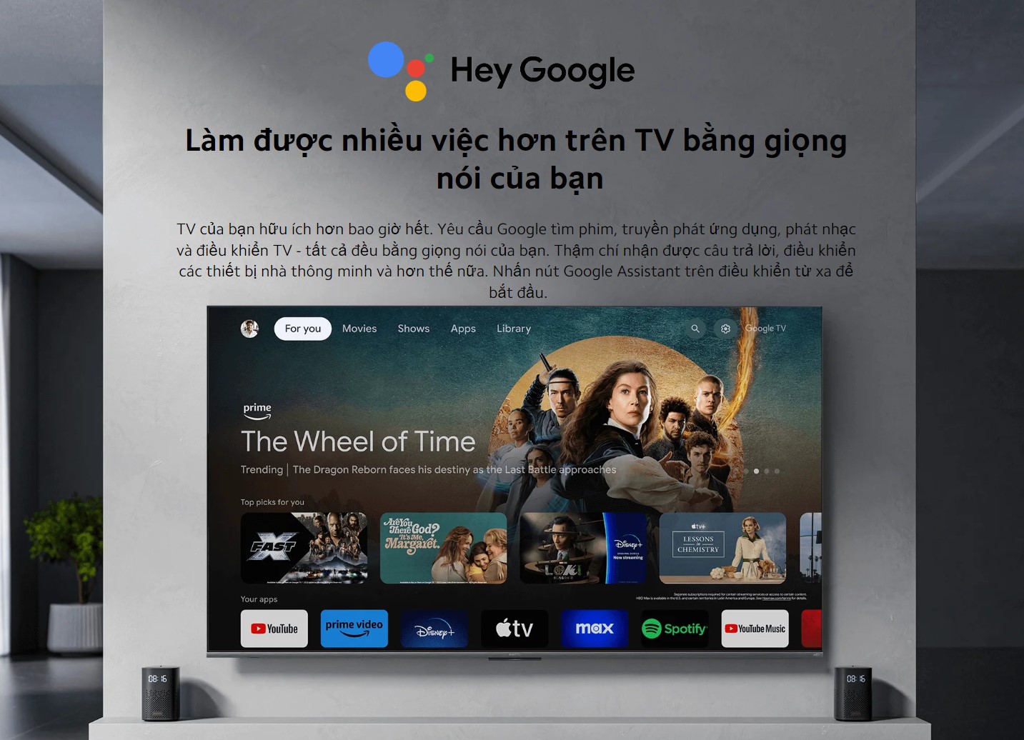 - Tivi tích hợp trợ lý ảo Google Assistant có tiếng Việt cho người dùng kết nối, điều khiển tivi dễ dàng.
