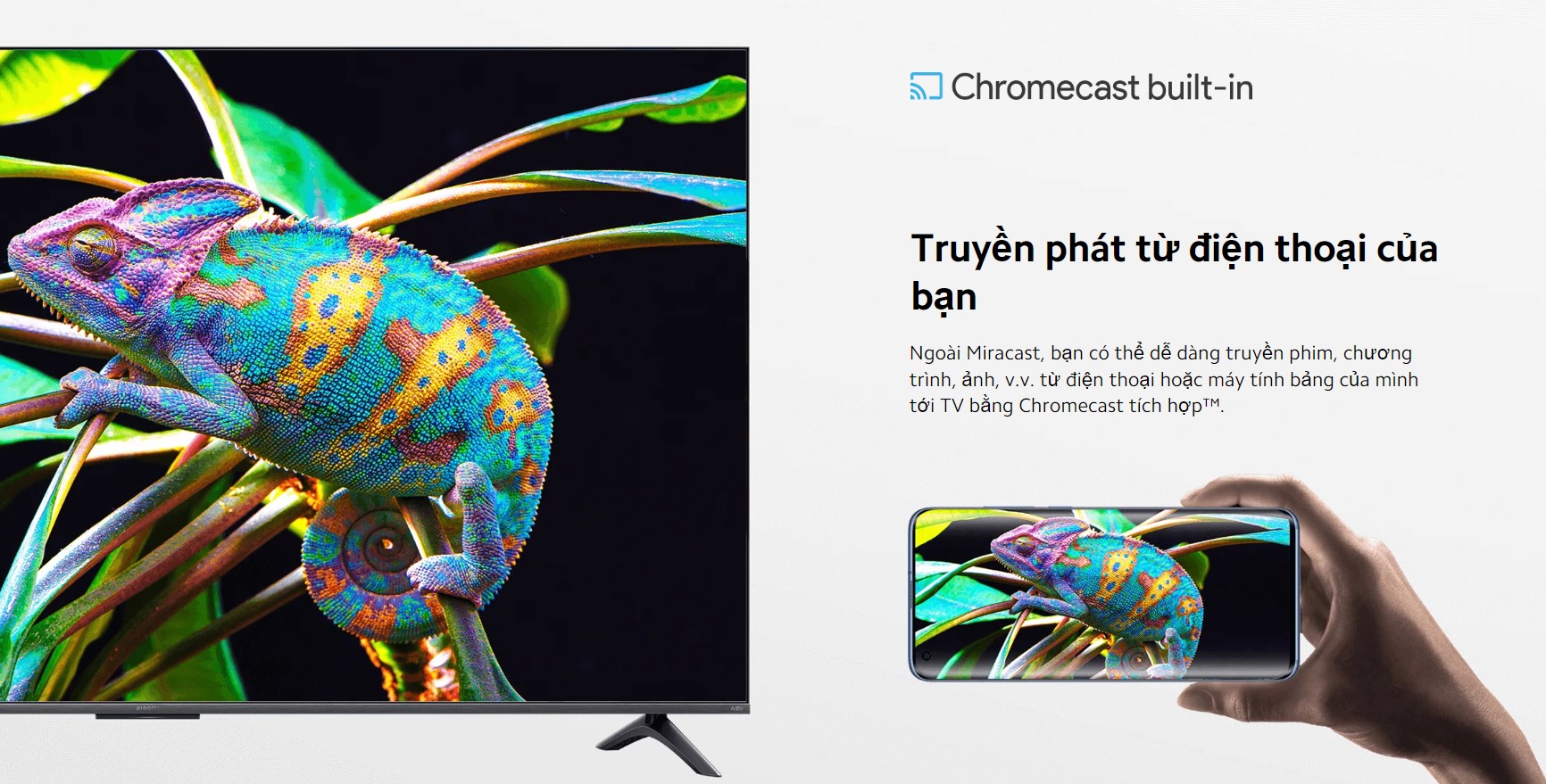 - Chromecast, Miracast giúp bạn trình chiếu các nội dung video, hình ảnh,... từ điện thoại lên màn hình tivi.