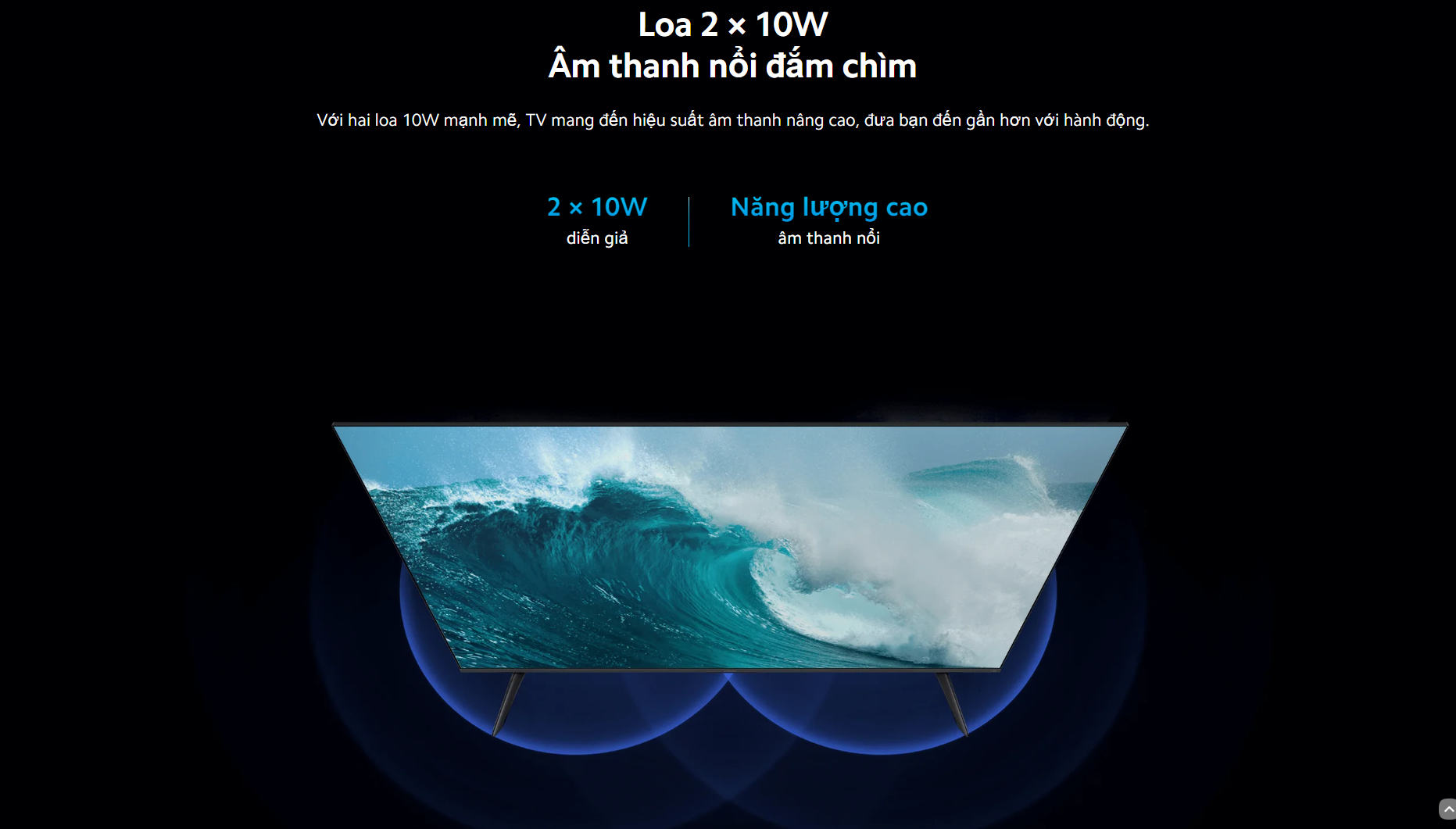 - Tivi Xiaomi này có hệ thống 2 loa với tổng công suất 16W cho người nghe tận hưởng những chất âm mạnh mẽ.
