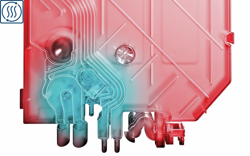 Máy rửa bát với bộ trao đổi nhiệt sẽ chăm sóc đồ thủy tính và sành sứ tốt nhất. Nước được đun nóng ở khoang riêng bên cạnh máy chống sốc nhiệt