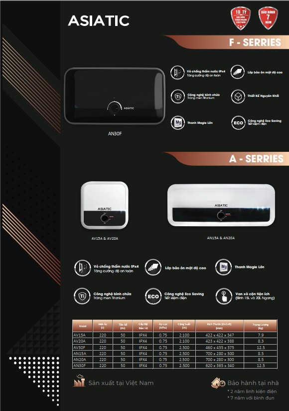Bình nóng lạnh Asiatic được sản xuất trực tiếp tại Việt Nam, an toàn và chất lượng.
