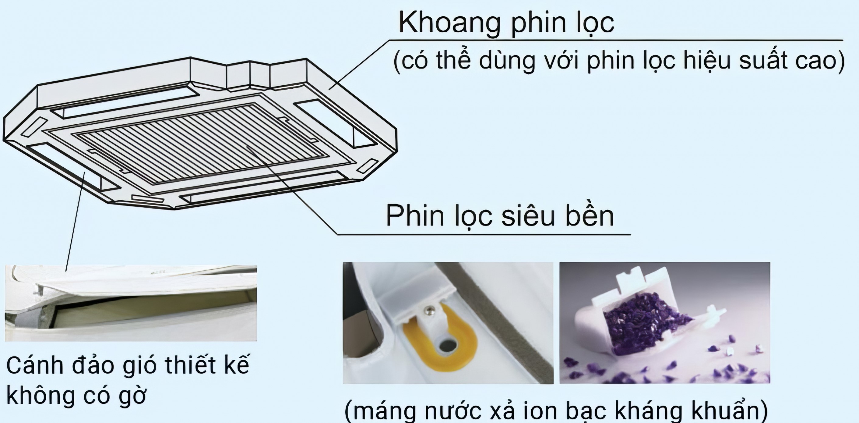 Máy điều hòa âm trần Daikin 48.000Btu FCNQ48MV1/RNQ48MY1 được trang bị phin lọc siêu bền (Chỉ cần vệ sinh 1 năm 1 lần) giúp ngăn ngừa bụi bẩn có hại cho sức khỏe, mang đến bầu không khí trong lành và an toàn cho người sử dụng.