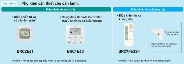 ■ Loại điều khiển từ xa có dây BRC2E61 và Điều khiển từ xa điều hướng BRC1E63 không bao gồm cáp điều khiển và được cung cấp tại địa phương.