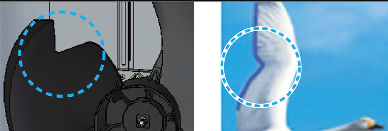 Việc sử dụng cánh quạt chân vịt có khía chữ V mô phỏng hiệu suất hoạt động của cánh loài thiên nga, điều này giúp cho lượng gió đều và không bị thất thoát.