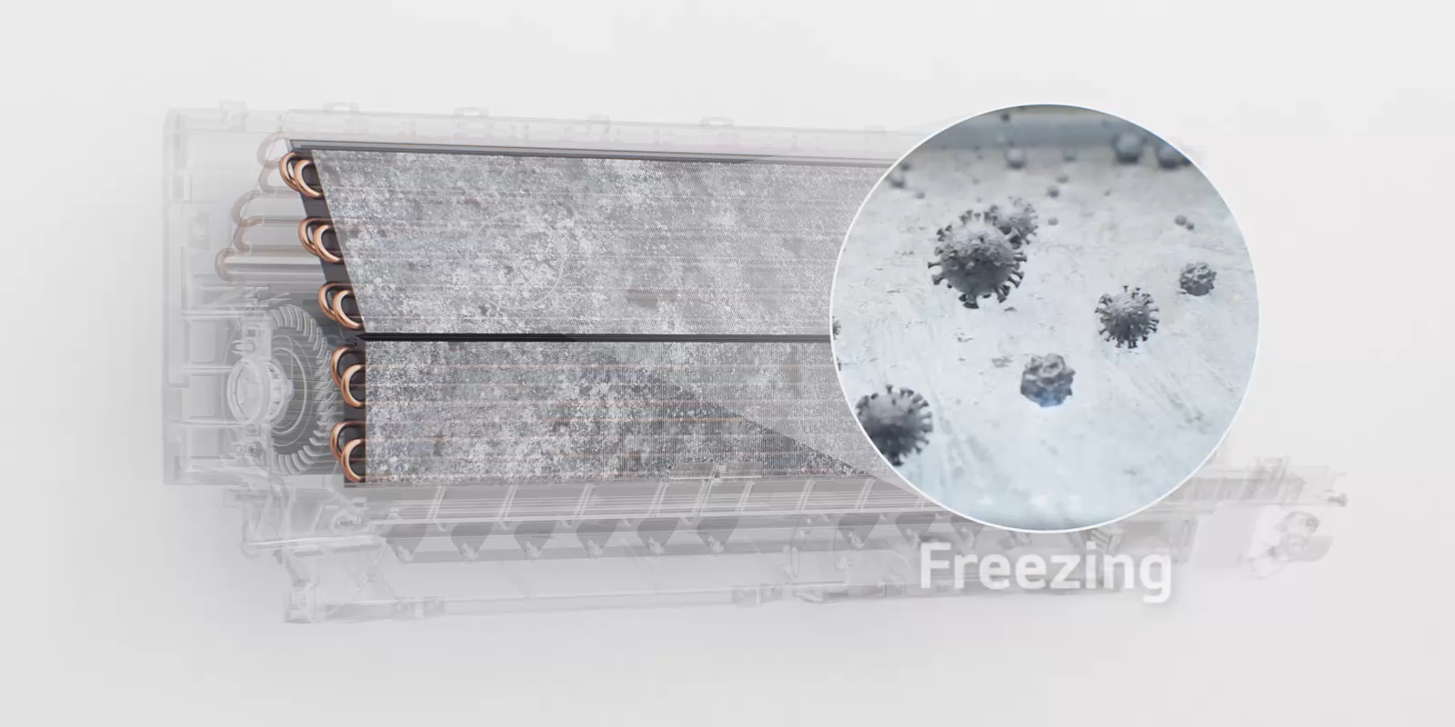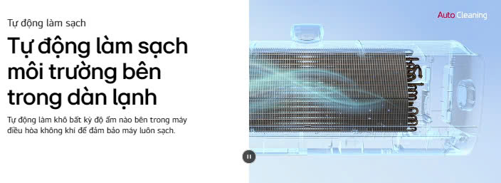 Dễ dàng làm sạch bên trong dàn lạnh máy điều hòa không khí với chế độ đóng băng làm sạch. Sử dụng nước băng tan để rửa sạch bụi và mùi ô nhiễm, giảm bớt vi khuẩn có hại, mang đến không khí trong lành hơn cho ngôi nhà
