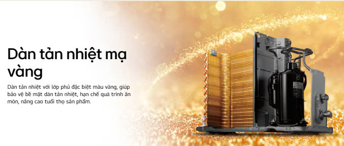 - Dàn đồng, cánh tản nhiệt mạ vàng chống ăn mòn