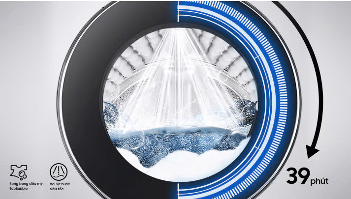 - Công nghệ bong bóng siêu mịn EcoBubble đánh bật vết bẩn, loại bỏ cặn bám.