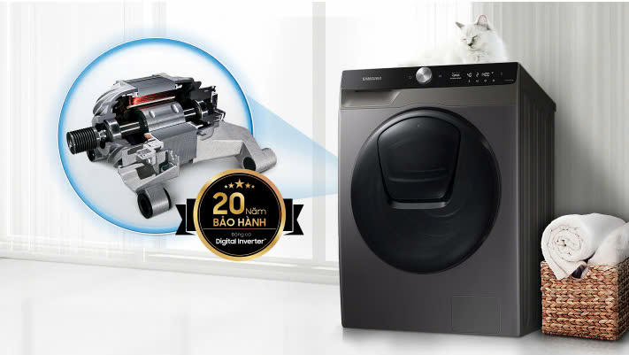 - Động cơ Digital Inverter giúp máy giặt Samsung 12 kg hoạt động êm ái và bền bỉ theo thời gian, đồng thời cho hiệu quả tiết kiệm điện năng đáng kể. Không những vậy, chế độ AI Energy còn cho phép bạn theo dõi và kiểm soát điện năng tiêu thụ của máy giặt giảm đến 70%.
