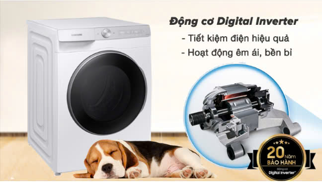 - Công nghệ Digital Inverter giúp máy giặt tiết kiệm điện, vận hành bền bỉ.
