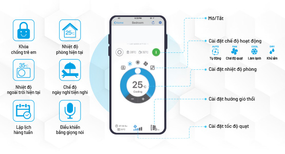 | Cảm biến | • Bụi • Mùi • Nhiệt độ |