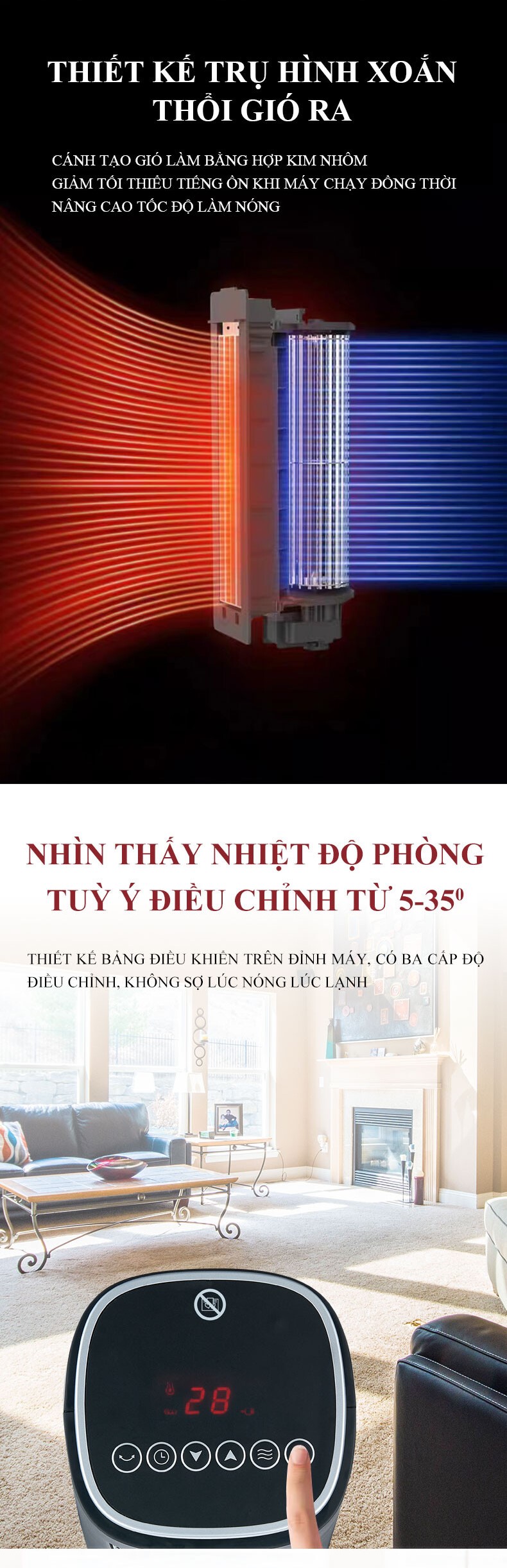 - Sưởi ấm, làm nóng đều không khí