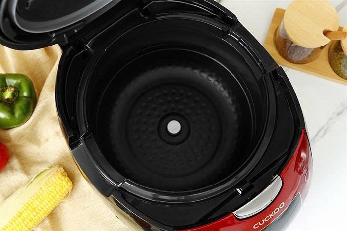 Nồi cơm điện Cuckoo có thiết kế ấn tượng, lạ mắt. Tone màu đen - đỏ đậm với độ bóng đẹp giúp tăng tính thẩm mỹ, tô điểm cho không gian bếp.