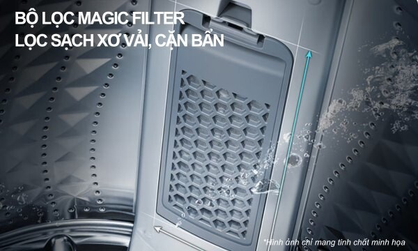 Máy giặt Samsung Inverter WA17CG6442BDSV cải tiến với bộ lọc Magic Filter 2 lớp giúp lọc sạch tối ưu xơ vải, cặn bẩn rơi ra trong quá trình giặt để từ đó tránh tắt nghẽn đường ống và không bám dính vào quần áo ở mẻ giặt tiếp theo.