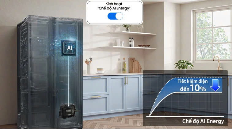 Chế độ AI Energy sẽ phân tích thói quen sử dụng tủ lạnh của bạn, từ đó ước tính mức tiêu thụ điện dựa trên công nghệ AI. Nếu hóa đơn tiền điện dự kiến vượt quá mục tiêu đặt trước của bạn, tủ lạnh sẽ nhắc bạn kích hoạt chế độ tiết kiệm điện giúp giảm thêm đến 10%.