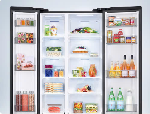 Với dung tích thực lên đến 578L, chiếc tủ lạnh Samsung side by side này là lựa chọn hoàn hảo cho những gia đình có từ 5 thành viên trở lên. Bên trong, không gian tủ đã được tối ưu thiết kế để người dùng có thể thoải mái lưu trữ các loại thực phẩm. Đặc biệt các khay ngăn chủ yếu được làm bằng kính cường lực nên người dùng có thể an tâm lưu trữ những thực phẩm có trọng lượng hơi nặng một chút.