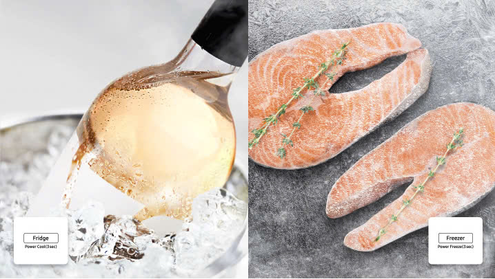 Chỉ cần ấn nhẹ vào nút Power Cool, luồng khí mát nhanh chóng được thổi ra khắp tủ lạnh và khiến thực phẩm hay đồ uống yêu thích của bạn trở nên mát lạnh trong chốc lát. Trong khi đó, chế độ Power Freeze thổi luồng khí lạnh mạnh mẽ vào tủ đông, nhanh chóng làm đông thực phẩm và tạo ra những viên đá lạnh tinh khiết.