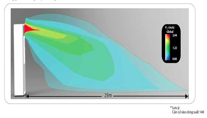 - Luồng gió thổi xa, cánh đảo gió tự động làm mát nhanh