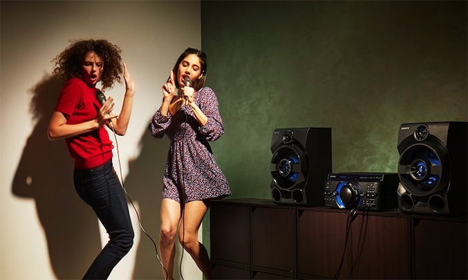 Dàn âm thanh làm say lòng người yêu thích karaoke. Hai ngõ vào micro để mọi người cùng hòa ca.