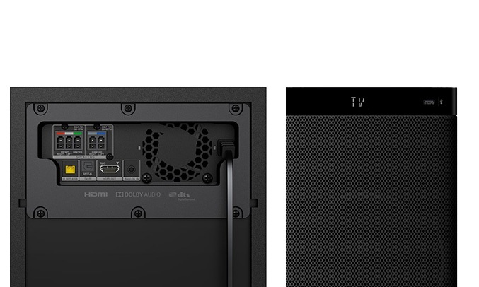 Loa tích hợp đầy đủ các cổng kết nối dây. HDMI ARC (Kênh trao đổi âm thanh) cho phép bạn kết nối với các loại TV tương thích chỉ bằng một cáp. Bạn cũng có thể kết nối với nhạc trên ổ USB đã lưu trữ thông qua cổng USB một cách dễ dàng.