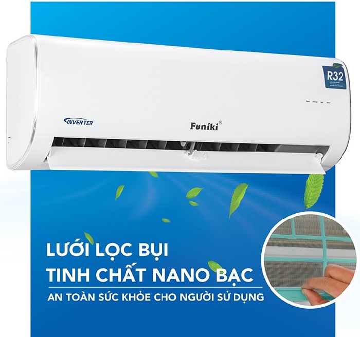 Điều hòa Funiki Inverter 1 chiều 9000BTU HIC09MMC có tấm lọc không khí tinh chất Nano bạc. Nhờ đó máy điều hòa này có thể loại bỏ vi khuẩn, nấm mốc, bụi bẩn, các chất gây hại một cách hiệu quả đem đến một môi trường sống trong lành, sạch sẽ, không gây ảnh hưởng đến sức khỏe của bạn và người thân trong gia đình.