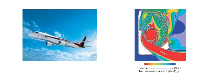 - Dựa trên nguyên lý “Jet Flow” của công nghệ động cơ phản lực trong việc chế tạo cánh tuabin. CFD (Computational Fluid Dynamics) được xem là công nghệ tiên tiến với việc sử dụng năng lượng hiệu quả cao trong việc tạo ra dòng khí lưu lượng lớn và tỏa đều đến mọi ngõ ngách phòng với công suất tiêu thụ điện năng thấp nhất.