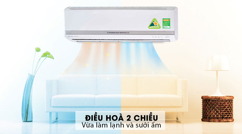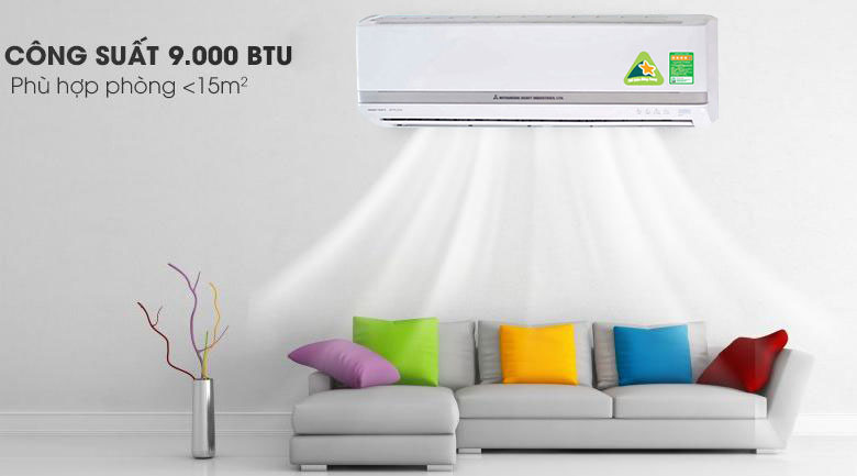 Điều hòa Mitsubishi Heavy 2 chiều Inverter 9000BTU SRK/SRC25ZJ-S5 công suất 9000Btu hoạt động 2 chiều nóng lạnh, máy thích hợp với phòng có thể tích 45 m3 khí tương ứng 10 đến 15 m2.
