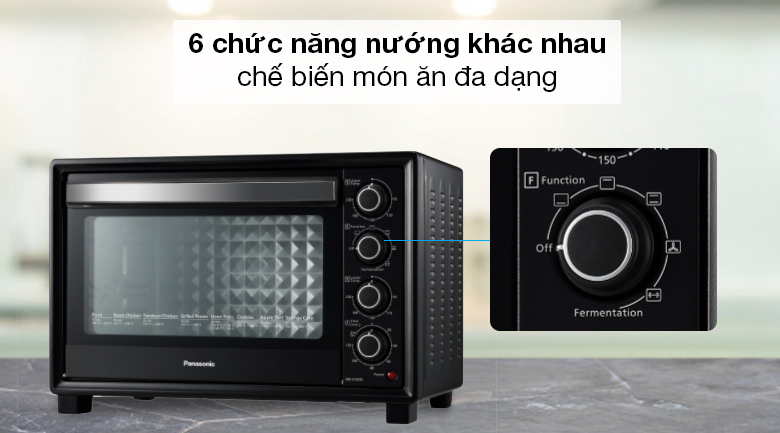 Các chức năng nướng gồm nướng thanh nhiệt trên, nướng thanh nhiệt dưới, nướng hai thanh nhiệt, đối lưu, quay, lên men, hỗ trợ thực hiện nhiều món ăn ngon từ nướng thịt, gà, cá, tôm đến lên men để làm bánh quy, pizza, bánh mì,...