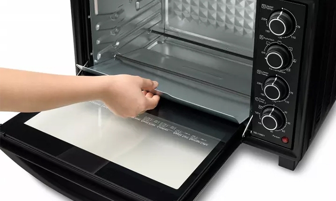 Bộ phụ kiện nướng kèm theo lò gồm:Khay nướng, vỉ nướng, tay cầm xiên quay, móc khay giữ nướng, khay hứng vụn, xiên quay. Giúp bạn có thể làm được đa dạng món ăn như gà quay một cách đơn giản và dễ dàng.