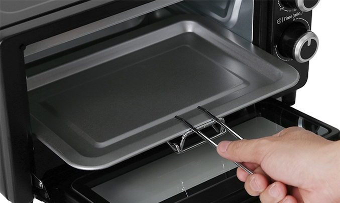 Chiếc lò nướng sở hữu 2 nút điều khiển vặn dạng cơ bản: điều chỉnh thời gian và nhiệt độ - giúp sản phẩm thật dễ dàng sử dụng dù là trẻ em hay người lớn tuổi.