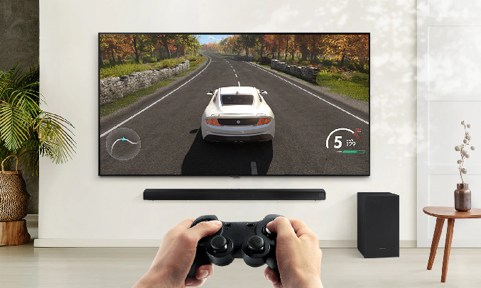 Loa thanh Samsung tích hợp chế độ Game Mode. Cụ thể tính năng này sẽ tự động tối ưu các thiết lập âm thanh phù hợp với từng cảnh game, giúp người dùng tập trung hơn. Bên cạnh đó, loa còn có công nghệ khử nhiễu xuyên âm, loại bỏ mọi âm thanh gây xao nhãng, đắm chìm trong không gian giải trí đỉnh cao.