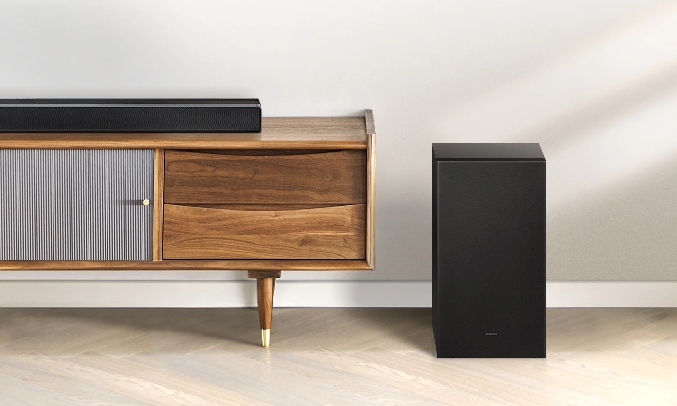 Loa thanh sở hữu dàn loa vệ tinh không dây cho phép bạn mở rộng trải nghiệm hệ thống âm thanh vòm một cách dễ dàng mà không cần dây nối, dễ dàng trải nghiệm âm thanh đa chiều thật.