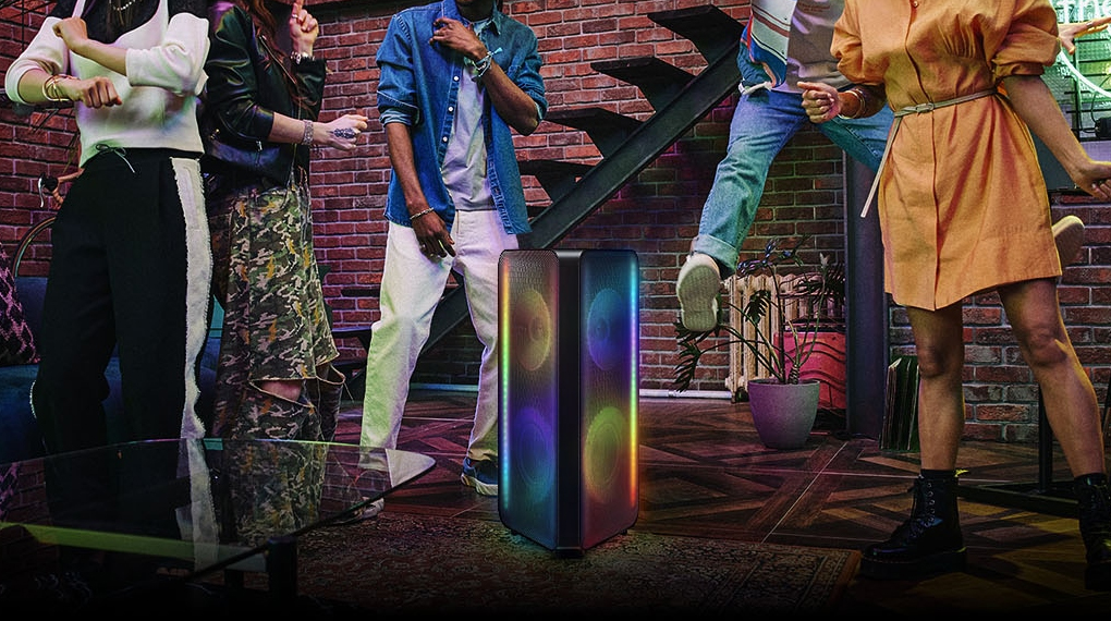 - Party Lights+ làm cho không khí sôi động với tính năng điều chỉnh chế độ ánh sáng đa dạng với nhiều âm điệu như: Party, Ambient, Dance, Thunder Bolt, Star và Lover. Chức năng này được sử dụng trên ứng dụng Sound Tower riêng biệt của loa.