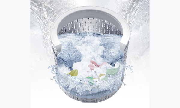 Bên cạnh việc khuấy đảo quần áo nhờ mâm giặt, các tia nước kép mạnh mẽ ở hai cấp độ khác nhau tạo ra từ máy giúp đảm bảo quần áo được tiếp xúc ở các mức nước khác nhau và luân chuyển chúng theo chiều dọc và chiều ngang để mang lại hiệu quả giặt đa hướng, đánh bật vết bẩn cứng đầu.