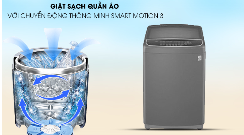 Quần áo sẽ được giặt sạch tinh tươm nhờ công nghệ giặt chuyển động thông minh Smart Motion 3 với sự kết hợp của 3 chuyển động nhào trộn, quay, đảo để mang tới khả năng giặt tối ưu cho từng loại vải. Sự kết hợp tối ưu giúp chăm sóc áo quần hoàn hảo, ba chuyển động này bao gồm: