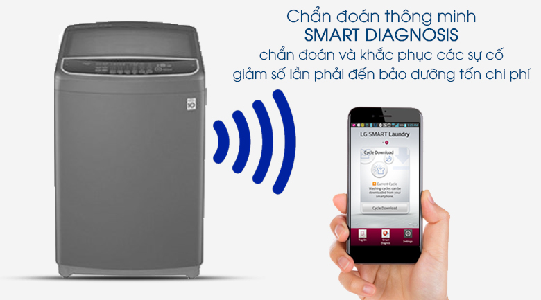 Máy giặt LG T2313VSPM được tích hợp chức năng chẩn đoán thông minh giúp người dùng có thể nhanh chóng biết được máy giặt của mình mắc lỗi gì thông qua điện thoại mà không cần nhân viên bảo hành đến tận nhà. Tính năng giúp tiết kiệm thời gian cho người dùng cũng như trung tâm bảo hành của hãng.