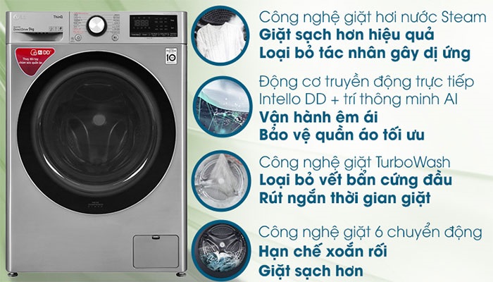 Những dòng máy giặt LG được trang bị cơ chế giặt hơi nước thường đem lại hiệu quả giặt sạch và diệt khuẩn tối ưu. Bằng công nghệ này, nước sau khi được đun sôi từ 60 độ C, sẽ bốc hơi từ bên dưới mâm giặt và thấm xuyên qua quần áo, len lỏi vào từng sợi vải, giúp quần áo sạch sẽ gần như tuyệt đối.