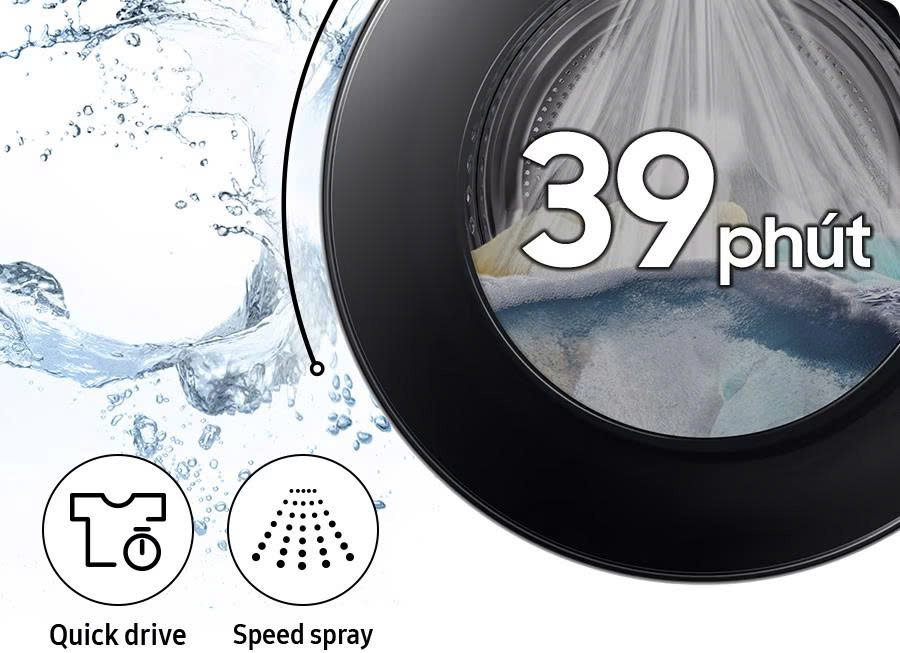 Không cần chờ đợi quá lâu để có mẻ đồ sạch sẽ, thơm tho. Với chế độ Super Speed, máy giặt có thể hoàn tất chu trình chỉ trong 39 phút, nhờ vòi phun nước tốc độ cao (Speed Spray) giúp tăng cường thẩm thấu bọt vào vải và rút ngắn thời gian xả. Đây là lựa chọn lý tưởng cho những ngày bận rộn.