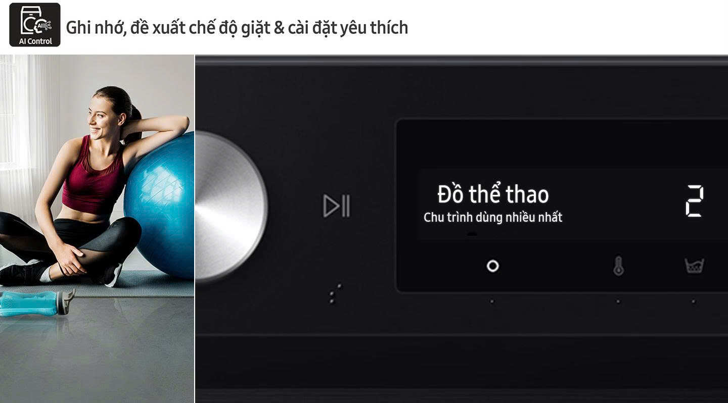 Bảng điều khiển AI Control của máy có khả năng ghi nhớ thói quen người dùng và tự động đề xuất chế độ giặt phù hợp. Không chỉ vậy, máy còn có thể liên kết với máy sấy Samsung để tạo chuỗi giặt – sấy liền mạch. Giao diện điều khiển hiển thị rõ ràng, dễ hiểu, kể cả với người lớn tuổi hay người mới sử dụng lần đầu.