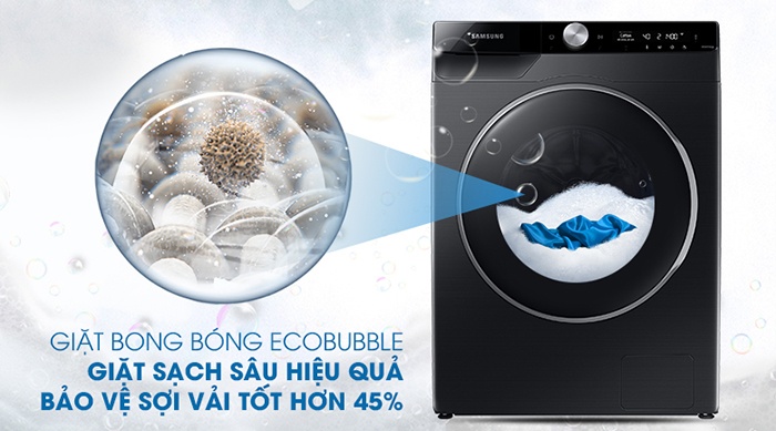 Nhờ vào những bong bóng siêu nhỏ, mịn tạo ra bởi công nghệ EcoBubble giúp đánh tan nước giặt tạo vô số bong bóng giúp thẩm thấu sâu vào từng bên trong sợi vải, giúp đánh bay vết bẩn nhanh đến 24% mọi bám bẩn, cặn trên quần áo đều được giặt sạch.