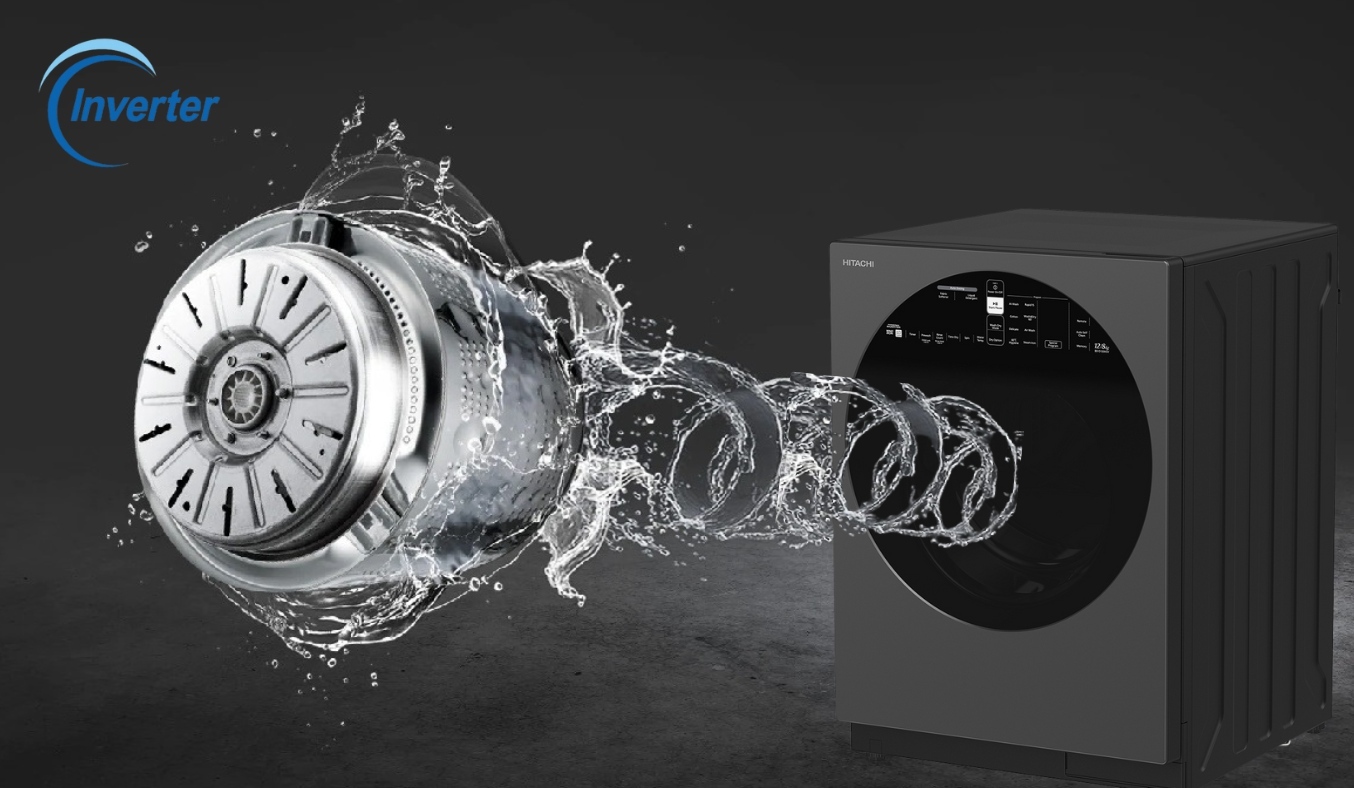 Máy giặt sấy Hitachi BD-D120XGV tuy "hiện đại" mang đến nhiều tiện nghi giúp bạn nhanh chóng có được quần áo sạch tinh tươm và khô ráo để sử dụng, nhưng lại không hề "hại điện" một tí nào nhé! Mà ngược lại, chúng vô cùng tiết kiệm điện và các tài nguyên khác. Cụ thể, máy được áp công nghệ biến tần Inverter - một trong những công nghệ "bảo chứng" cho khả năng tiết kiệm điện của hầu hết các sản phẩm điện tử, điện lạnh, giúp làm sạch và sấy khô triệt để quần áo nhưng vẫn đảm bảo không gây rung ồn và tiết kiệm điện gấp nhiều lần so với máy giặt không có inverter. Và vì là dòng máy giặt sấy lồng ngang nên BD-D120XGV cũng tiết kiệm nước gấp 2 - 3 lần các loại máy lồng đứng nhờ cơ chế xoay li tâm, không cần mực nước bằng với mức quần áo nhưng vẫn giặt cực sạch . Máy cũng có khả năng tự phân bổ nước giặt xả phù hợp theo lượng quần áo. Như vậy, dễ dàng thấy, đây quả thực là chiếc máy giặt vừa thông minh, giặt giũ hiệu quả, vừa tiết kiệm toàn diện về mọi mặt.
