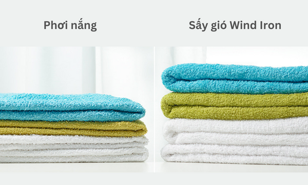 Ngoài ra, công nghệ sấy gió Wind Iron còn bảo vệ quần áo tốt hơn so với việc bạn phơi dưới ánh nắng trực tiếp, giúp quần áo lâu hư hỏng, sợi vải luôn mềm mịn và luôn trông như mới mua về.