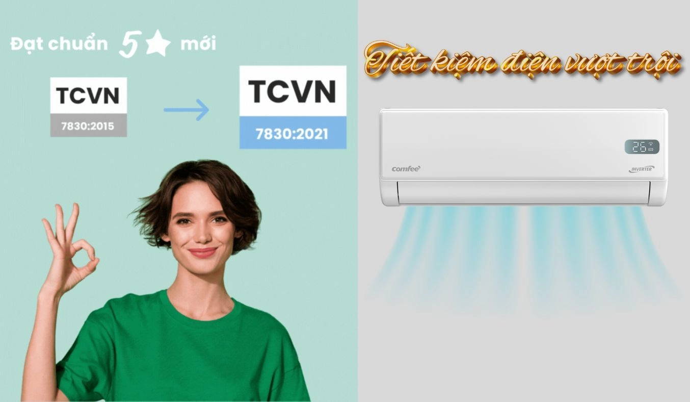 Đặc biệt, điều hòa thông minh Comfee đạt chuẩn năng lượng 05 sao mới theo tiêu chuẩn nhãn năng TCVN 7830:2021, đảm bảo khả năng tiết kiệm điện vượt trội trong phân khúc phổ thông.