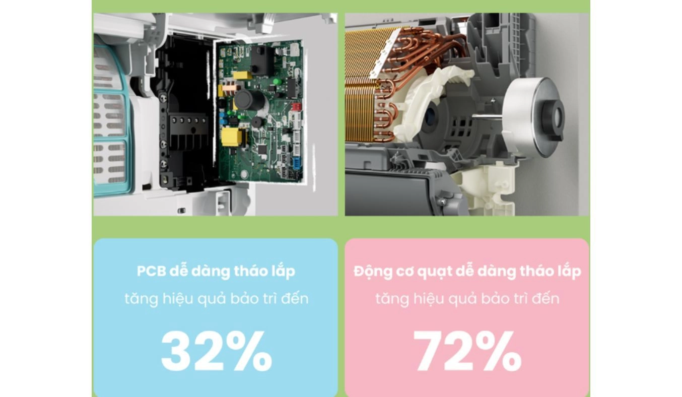 Thiết kế PCB và động cơ quạt dễ dàng tháo lắp nhanh chóng, tiết kiệm thời gian bảo trì và vệ sinh máy, tăng hiệu quả bảo trì tối đa nhất.