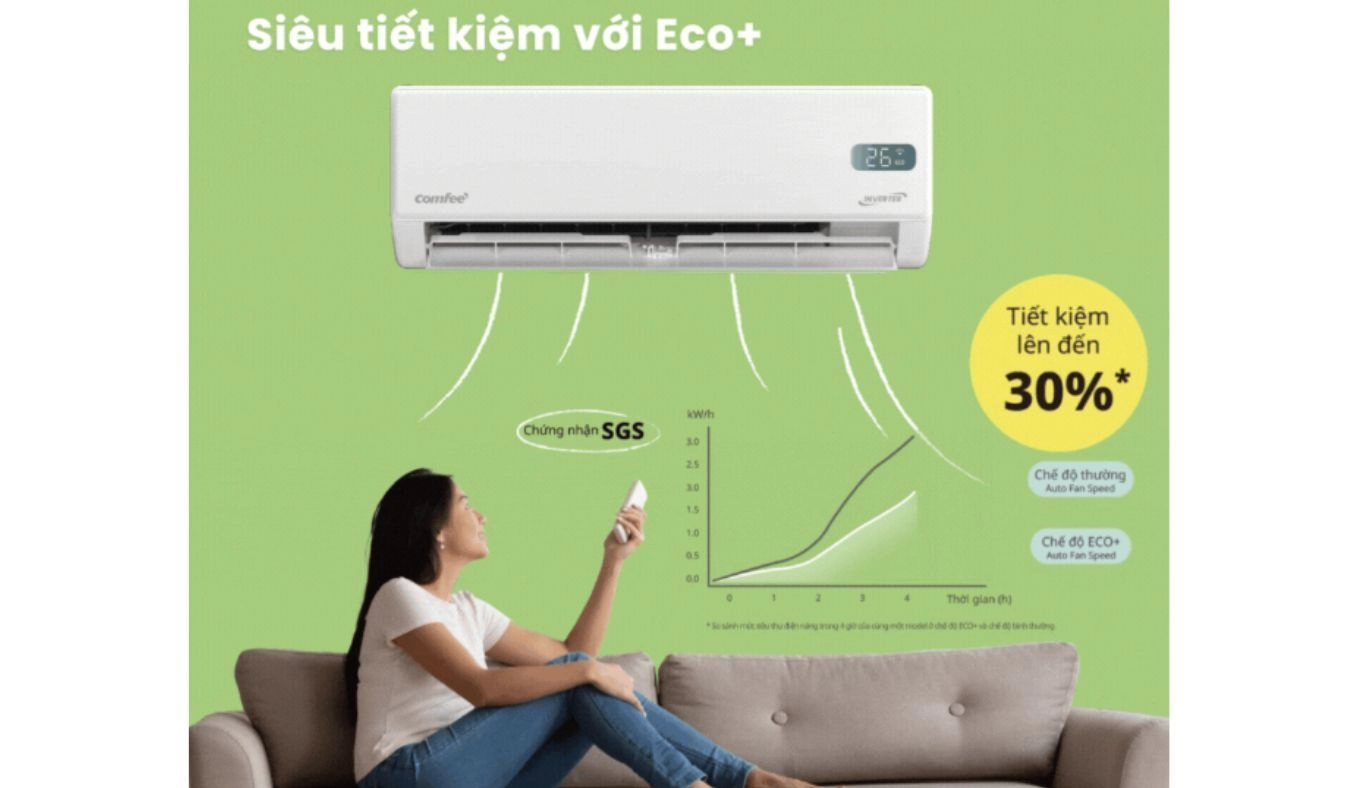 Công nghệ tiết kiệm năng lượng thế hệ mới của Comfee, ECO+, được trang bị thuật toán AI, có thể cân bằng giữa nhu cầu tiết kiệm năng lượng và sự thoải mái.