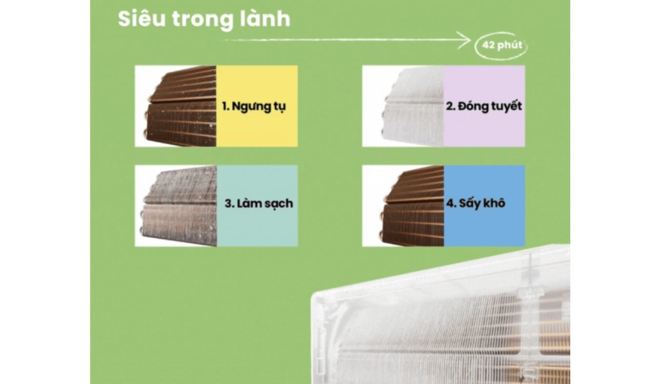 Công nghệ này giúp đóng băng vi khuẩn và bụi bẩn ở -10 độ C, sau đó rã đông và làm sạch, giúp rửa trôi mọi bụi bẩn và vi khuẩn hiệu quả nhất, giữ cho làn gió luôn trong lành và an toàn cho sức khỏe.