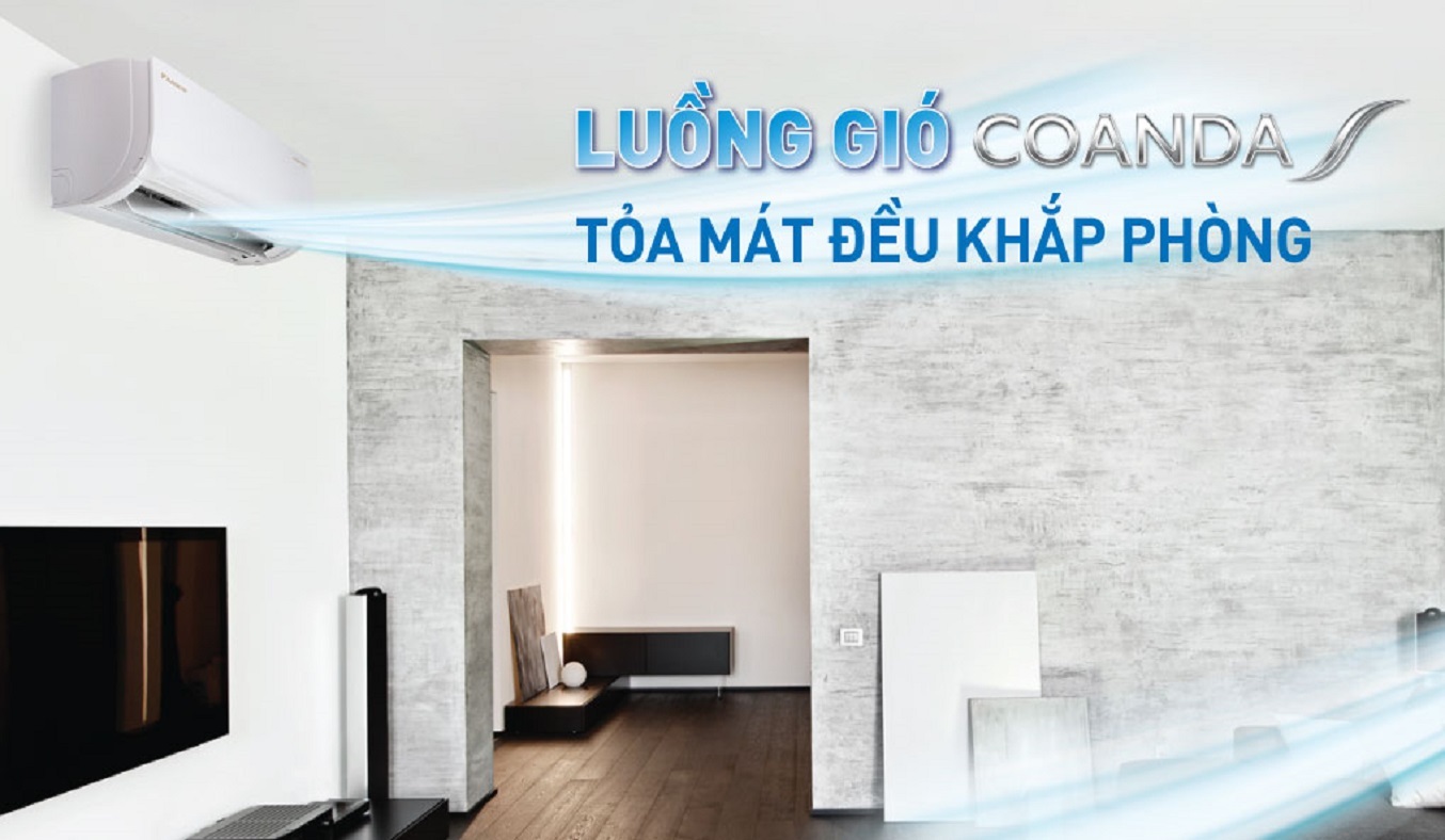 Máy lạnh Daikin Inverter 2 HP FTHF50VVMV - Máy lạnh 2 chiều hiện đại vừa có khả năng làm lạnh vừa có thể sưởi ấm mang đến cho bạn không gian phòng mát lạnh vào mùa hè và ấm áp và mùa đông. Tính năng Coanda độc đáo trên Máy lạnh Daikin Inverter giúp đưa luồng gió đi dọc theo trần nhà rồi tỏa xuống, phân bổ không khí tươi mát đều khắp phòng và tránh gió thổi trực tiếp vào cơ thể, mang lại cảm giác thoải mái tối đa, bảo vệ sức khỏe.