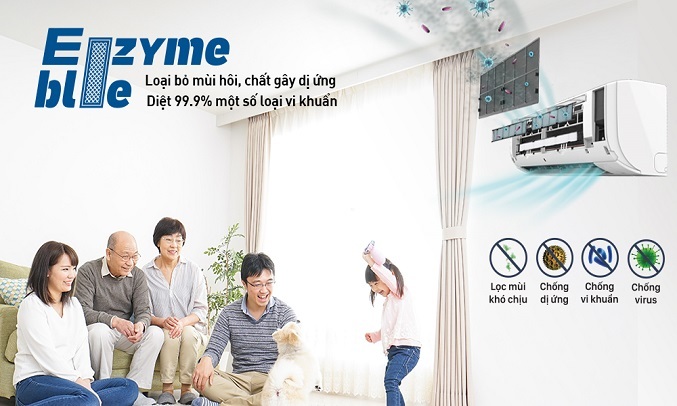 Máy lạnh Daikin Inverter sở hữu Phin lọc Enzyme Blue có khả năng loại bỏ hơn 90% mùi hôi khó chịu, ngăn ngừa dị ứng hiệu quả và giảm vi khuẩn cho không khí trong lành hơn.