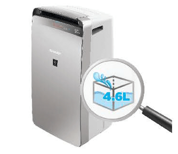 Dung tích bồn chứa lên đến 4.6 lít (Đối với DW-J27FV-S) sẽ giúp máy vận hành trong thời gian dài mà không phải thay khay chứa nước nhiều lần.