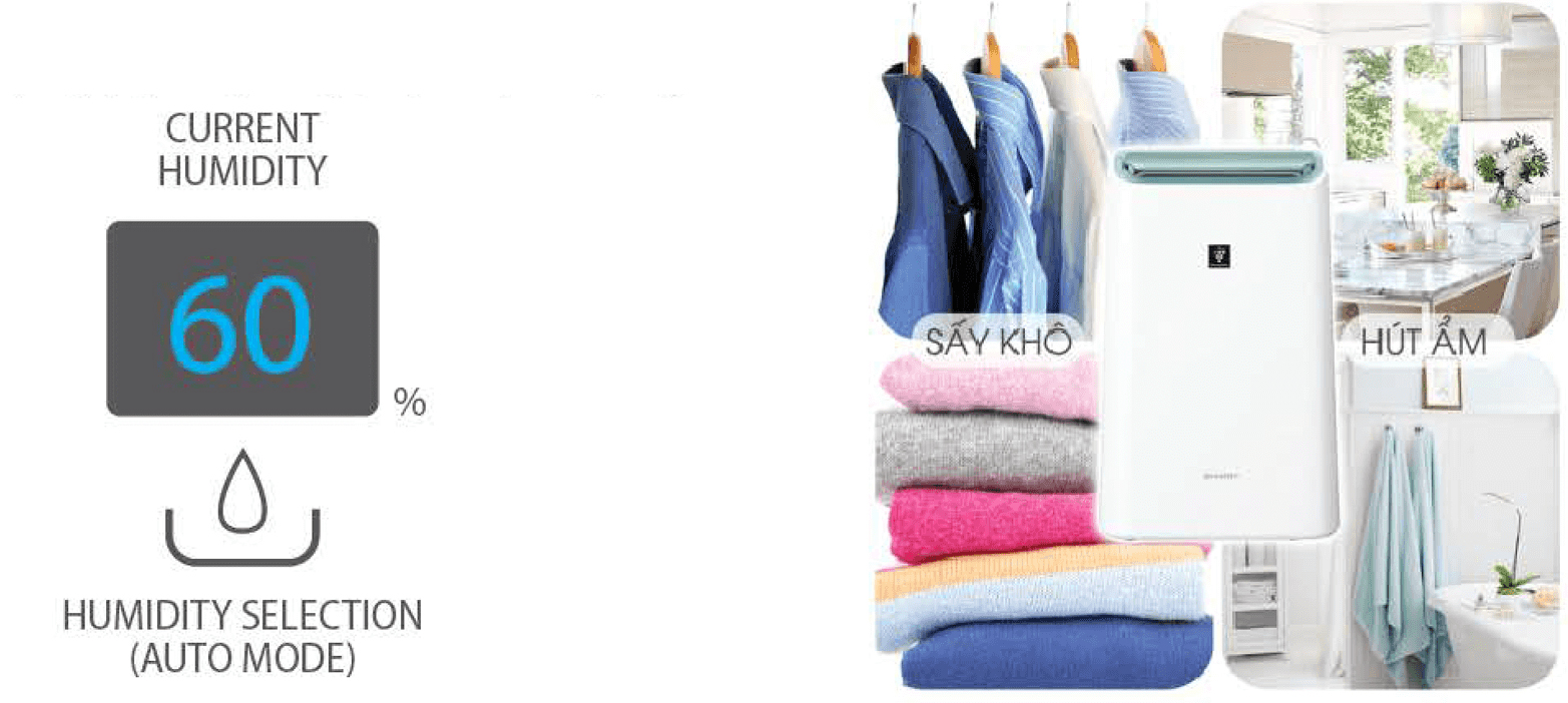 Màn hình hiển thị độ ẩm giúp người dùng dễ dàng lựa chọn chế độ hút ẩm phù hợp