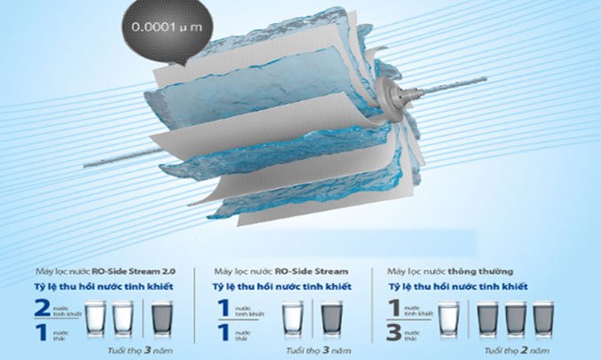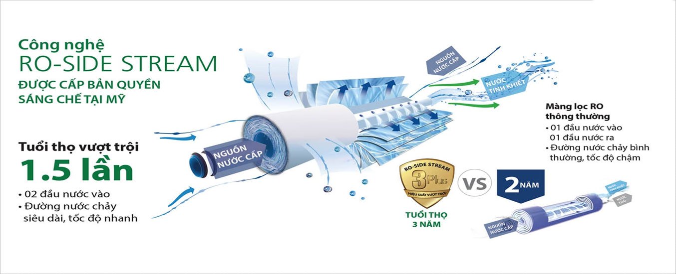 Máy lọc nước R.O 5 lõi A.O.Smith S600 được trang bị công nghệ lọc nước RO- Side Stream là công nghệ tiên tiến nhất. Đây là công nghệ lọc nước độc quyền của AO Smith tại Mỹ với tỷ lệ thu hồi nước tinh khiết so với các công nghệ RO thông thường cao gấp 3 lần so với các lõi lọc thông thường. Đồng thời, lõi lọc RO - Side Stream 2.0 còn có tuổi thọ cao, duy trì quá trình lọc nước tốt trong nhiều năm.